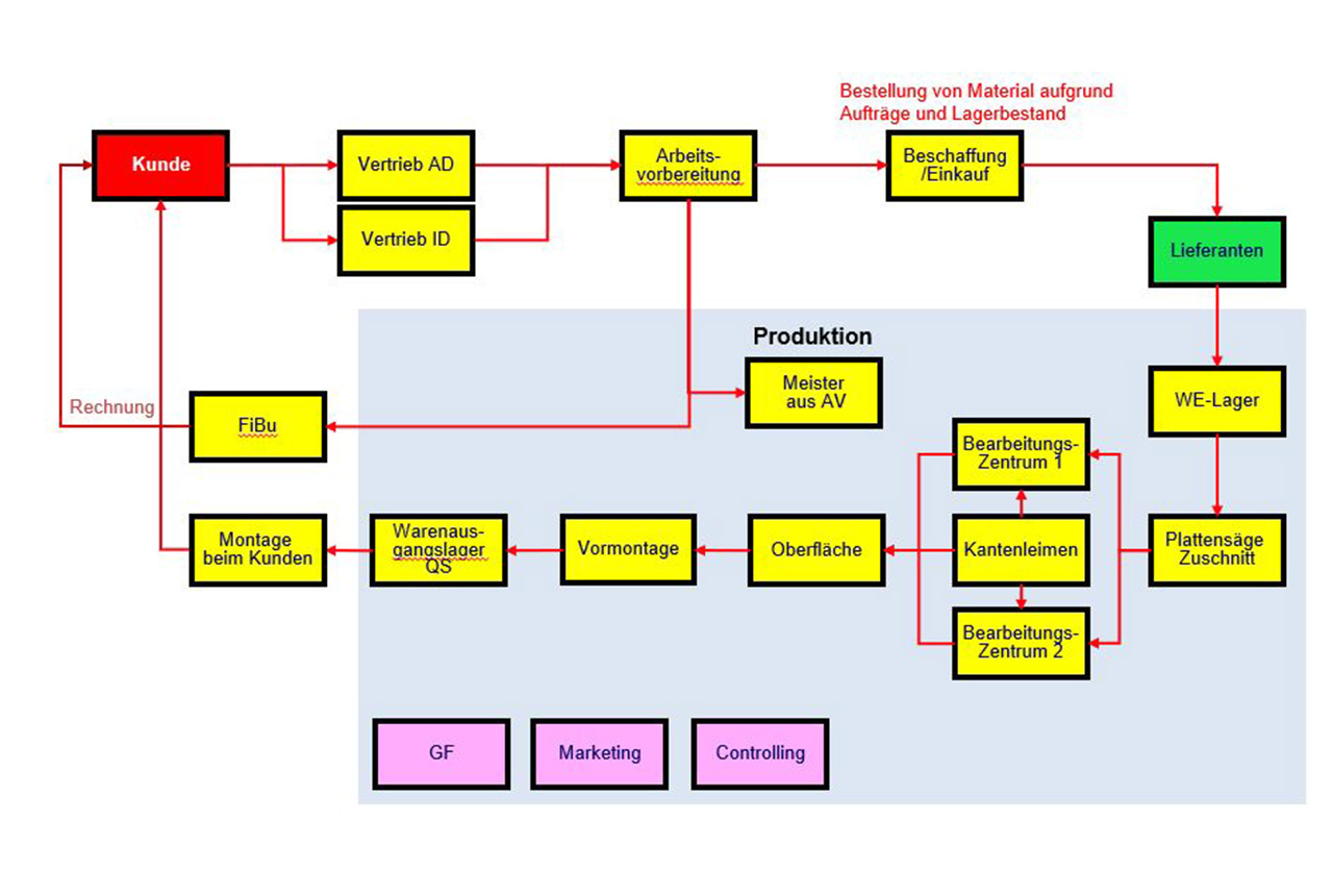 Our production process is shaped from the very beginning by the choice of materials. Whether it’s conventional chipboard, real wood veneer, or solid wood, each material requires different processing steps and machinery. These steps vary in terms of cutting, edge processing, and surface treatment. Thanks to our modern machinery, we can carry out all production processes efficiently. This allows us to ensure that your furniture is installed in your home, practice, or store as quickly as possible.