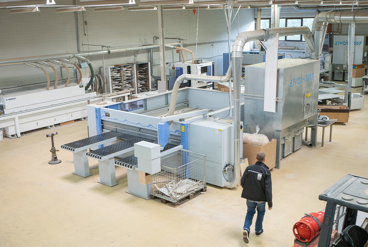 Through our photovoltaic system, we generate 40% of our daily electricity consumption ourselves, which helps us save up to 20 tons of CO2 per year. Additionally, with the introduction of a new horizontal panel saw and an associated optimisation program, we are able to minimise waste and reduce unused panel material. This further allows us to save an additional 32 tons of CO2 per year compared to our machine setup just a few years ago.