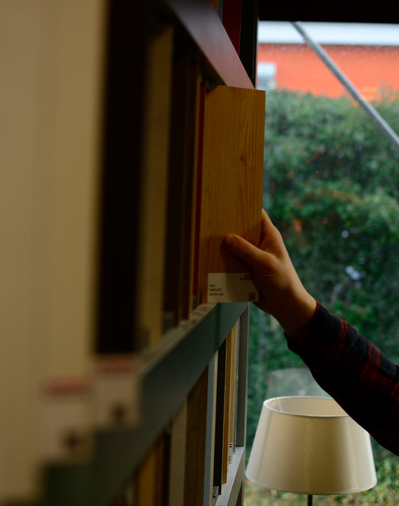 Our sample room offers a wide range of colours and textures, from kitchen worktops and furniture fronts to glass and lacquered surfaces.